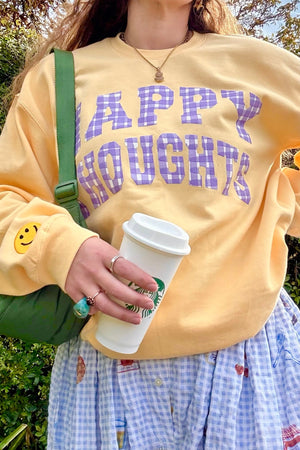 ☻ Tiff is a UK size 8-10 & wears a size S-M yellow & brown sweatshirt
